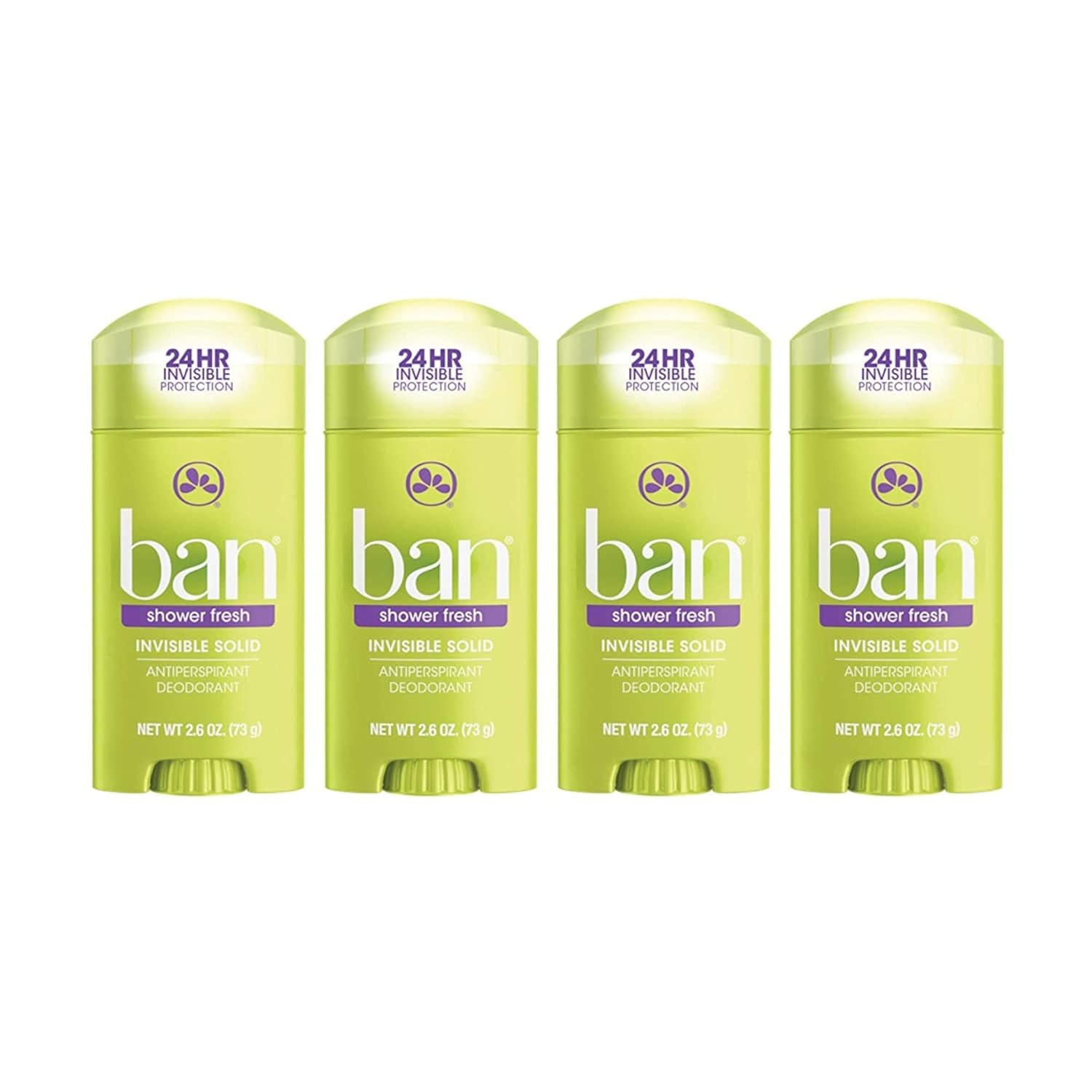 Ban Shower Fresh 24-hour Invisible Antiperspirant, Solid Deodorant for Women and Men, Underarm Wetness Protection, with Odor-fighting Ingredients, 2.6 Ounce (Pack of 4)