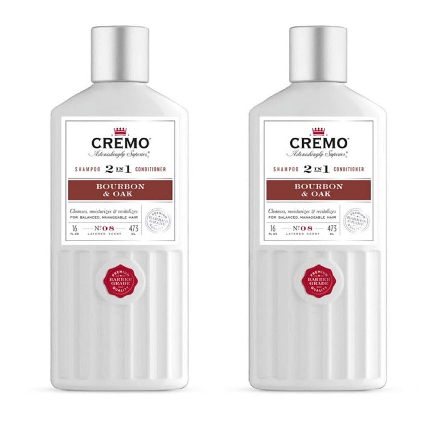 Cremo Bourbon & Oak Barber Grade 2-in-1 Shampoo & Conditioner, 16 Fl Oz (2-Pack) - A Sophisticated Blend of DistillerÕs Spice, Fine Bourbon and White Oak