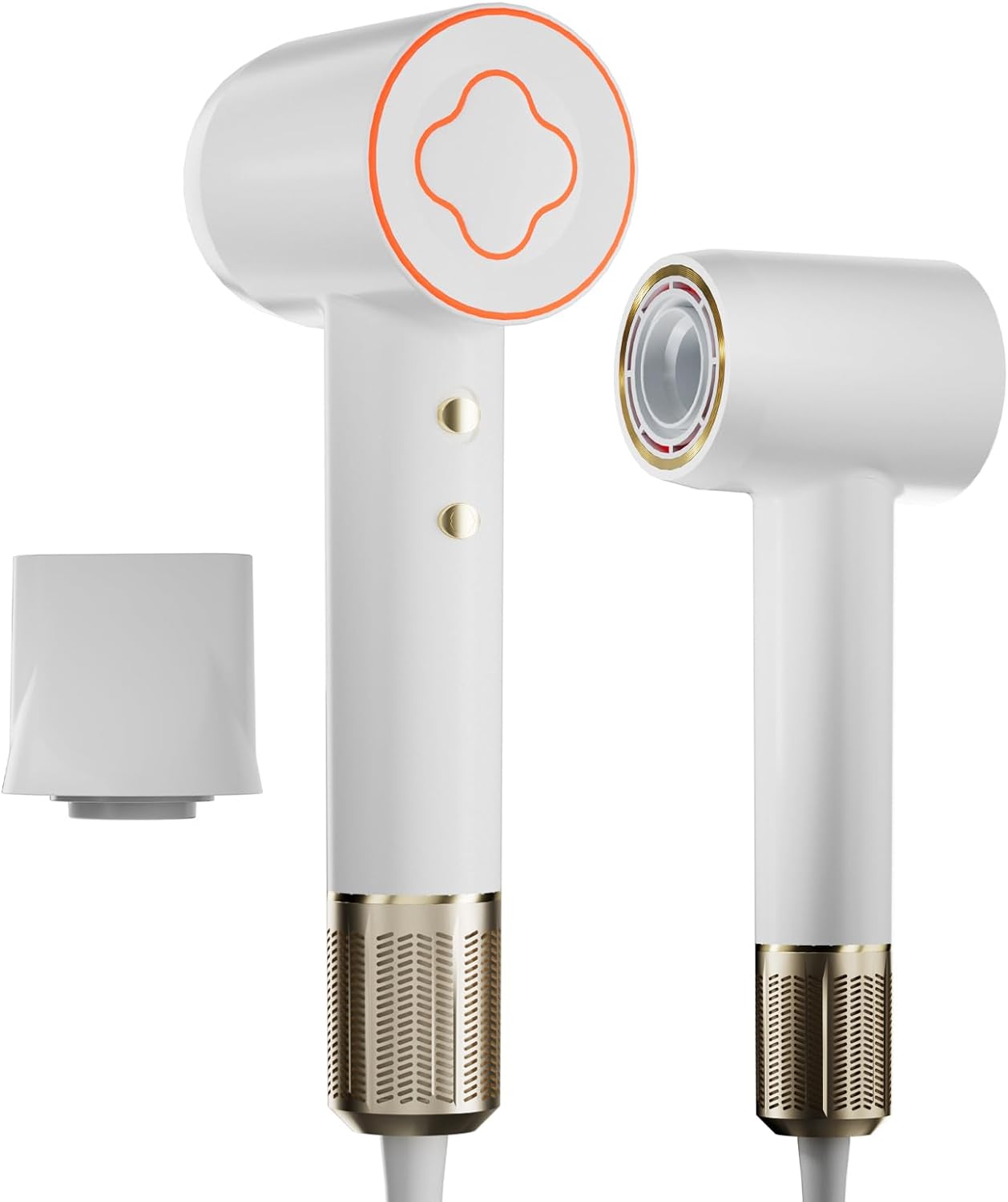 Hair Dryer, 110,000 RPM Brushless Motor High-Speed Low Noise Thermo-Control with 200 Million Negative Ionic Blow Dryer,1500W Fast-Drying Portable Hairdryer for Home, Travel (Write)