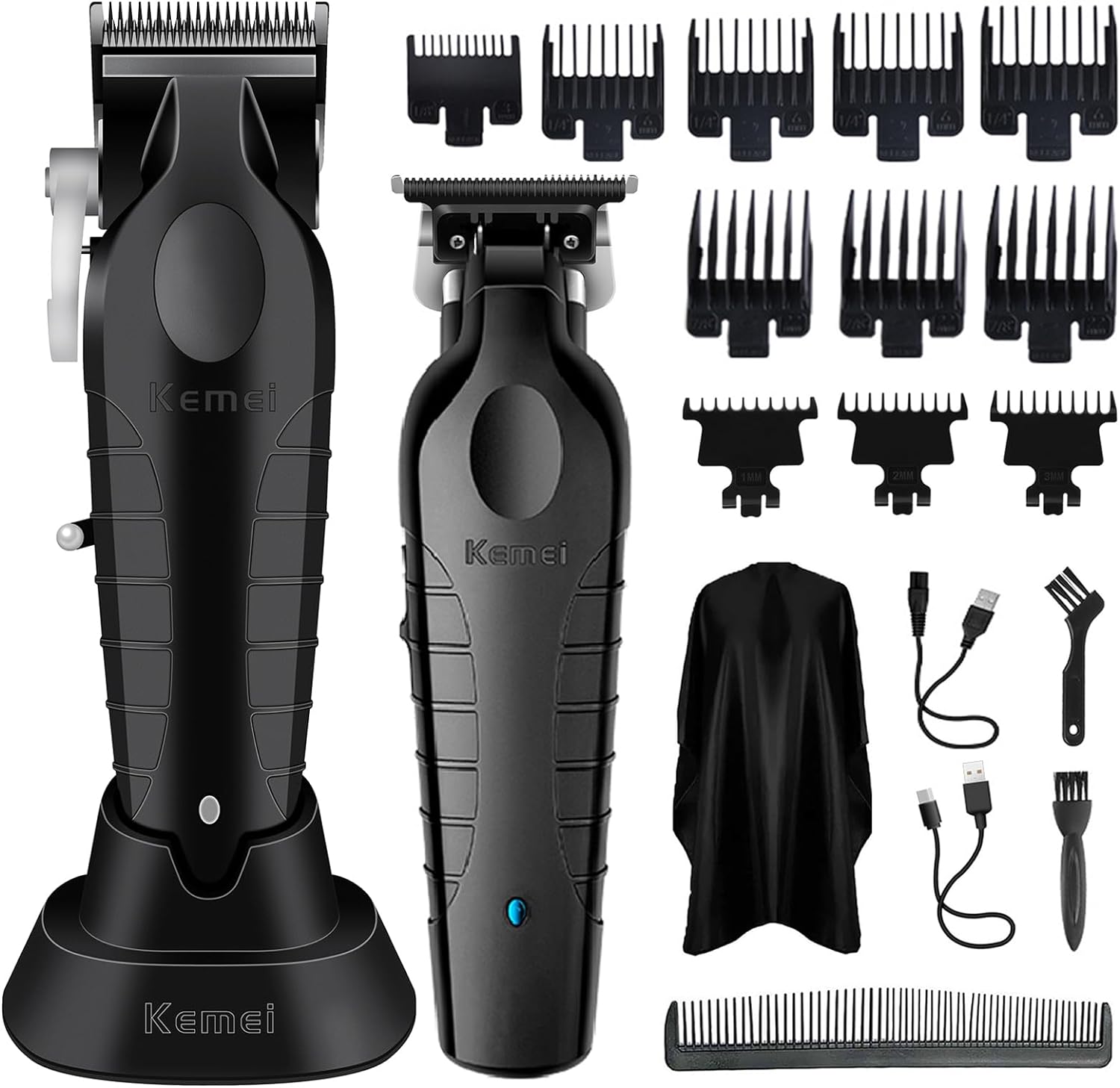 KEMEI Hair Clipper and Trimmer Set Professional Cordless Hair Clipper for Men Electric Beard Trimmers Barber Hair Cuttings Kit, T Blade Trimmers for Men, KM-2296_KM-2299