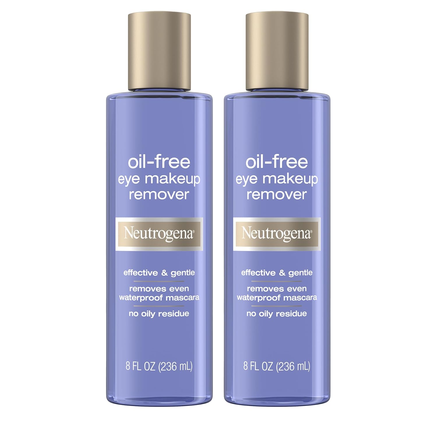 Neutrogena Gentle Oil-Free Eye Makeup Remover & Cleanser, Non-Greasy Makeup Remover, Removes Waterproof Mascara, Ophthalmologist-Tested, Twin Pack, 2 x 8.0 fl. oz